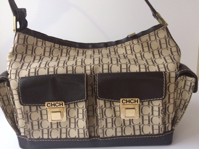 Bolso Carolina Herrera Logo Bolos Carolina Herrera Algodón y piel Color marrón Precio inicial : 600€ Precio actual : 300€